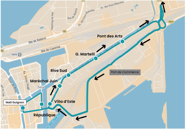 Depuis l’entrée Est de Sète (en provenance de l’A9 et de Montpellier via la D612), vous serez dirigés vers le port de Commerce de Sète, où un parking est à disposition gratuitement. Une navette en bus sera mise en place pour vous amener au plus près de l’évènement, au niveau du Quai de la République.